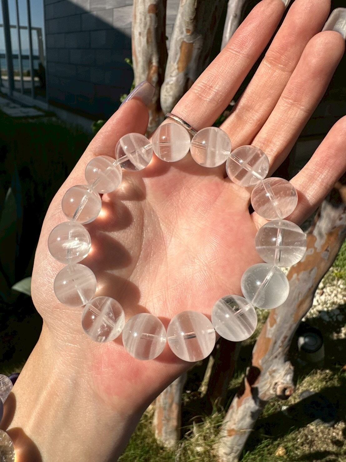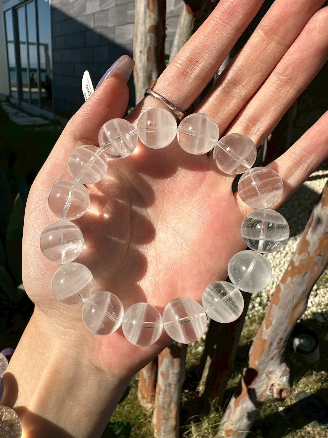 スリランカ産 ホワイトファントムクォーツ15-16mmブレスレット wht-pht-01-W
